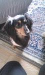 ダックスダックスのオールインワンを着てかわいい顔をしているミルキーです。めったにこんなかわいい顔してくれません。