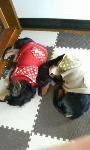 モモと里夢二人で寄り添ってヒーターに当たってます(^-^)