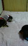 写真はモモが持ってるガムが欲しくて狙ってる里夢から、ガムを必死に守ってるモモです(((^^;)
