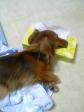 ティアラの気持ち良さそうに寝てる写真が撮れたので送ります(^O^)/ 柔らかい物が大好きなティアラはタオルやTシャツなどで納得のいくまで巣作りして寝てますが…今日は枕変わりにティッシュ箱f^_^;をプラス…!?頭を乗せてました(>_<)ヒンヤリして気持ちいいのかなぁ〜。。笑いを振りまいてくれるティアラとアロマに癒される日々です(^O^)