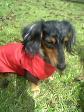 雨あがりの公園にレインコートでお散歩中のアロちゃんです(^O^)濡れた芝生でもo(^-^o)(o^-^)o楽チンです。