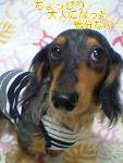 ☆福袋☆に入っていたボーダー柄ランニングo(^-^)oワンポイント(^O^)bのオレンジ色のDDマーク刺繍がさりげなく効いてますね!!着せた時のフィット感もバッチリででしたV(^0^)アロちゃんの感想は‥フムフム(^^ゞそ〜ですか‥お写真ご覧下さいm(__)mと申しておりますf^_^;