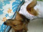 朝晩ひんやりC=(>_<。)日にA秋に近づいてきた軽井沢…夕方にはたまらず電気カーペットにスイッチ〜オーン!!またまたティアちゃんの“お潜り生活”がやってきます(~-~;) と…そのまえに抜け毛が始まりましたf^_^;まだ8月なのに…すでに「冬仕度」に取り掛かり始めた我が家です┐(´〜`;)┌本日のティアラは…寒さ対策(夜中は特に冷えます(泣))&抜け毛対策 を兼ねて☆こぶたちゃんロンパース☆アロマもお揃いで♪こぶた隊♪準備完了!!\(^O^)/ と思ったら…ティアちゃん先に《おやすみなさい》!Zzz(-。-)。oOしてました(・・?)