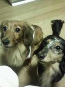 仲良しな2ワン☆☆視線の先にゎ…ララのささみがぁ〜(*^^*)大好きなささみに釘付けですぅ(((^^;)