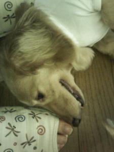 お散歩から帰って来て足を拭ぃてたらぁ…「もぅ〜ダメ!立ってられましぇん」とゴロ〜ンしてしまぃましたぁ(((^^;)暑かったから疲れたねぇ。