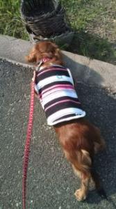お散歩の途中、木の枝で編んだ バスケットのような物に 向かって 「あなたは 誰?」 後ろ足は 突っ張ってまぁ〜す(^-^)