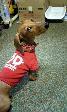 こんにちは!中西クレアです。今日、モコモコTシャツ届きました!Sサイズでバッチリでした。最近、痩せてしまって(4.4`)サイズ心配してたけど、よかったです! クレアは、走ったりすると口から泡(蟹さんみたい)をだしたり、胸が紫色になったりしてたんですが、不整脈だったみたいです。最近周りのダックスちゃんが皮膚がん(脂肪なんとか)になったりと体調悪くなる子が多いので寒くなるし気をつけたいですね。