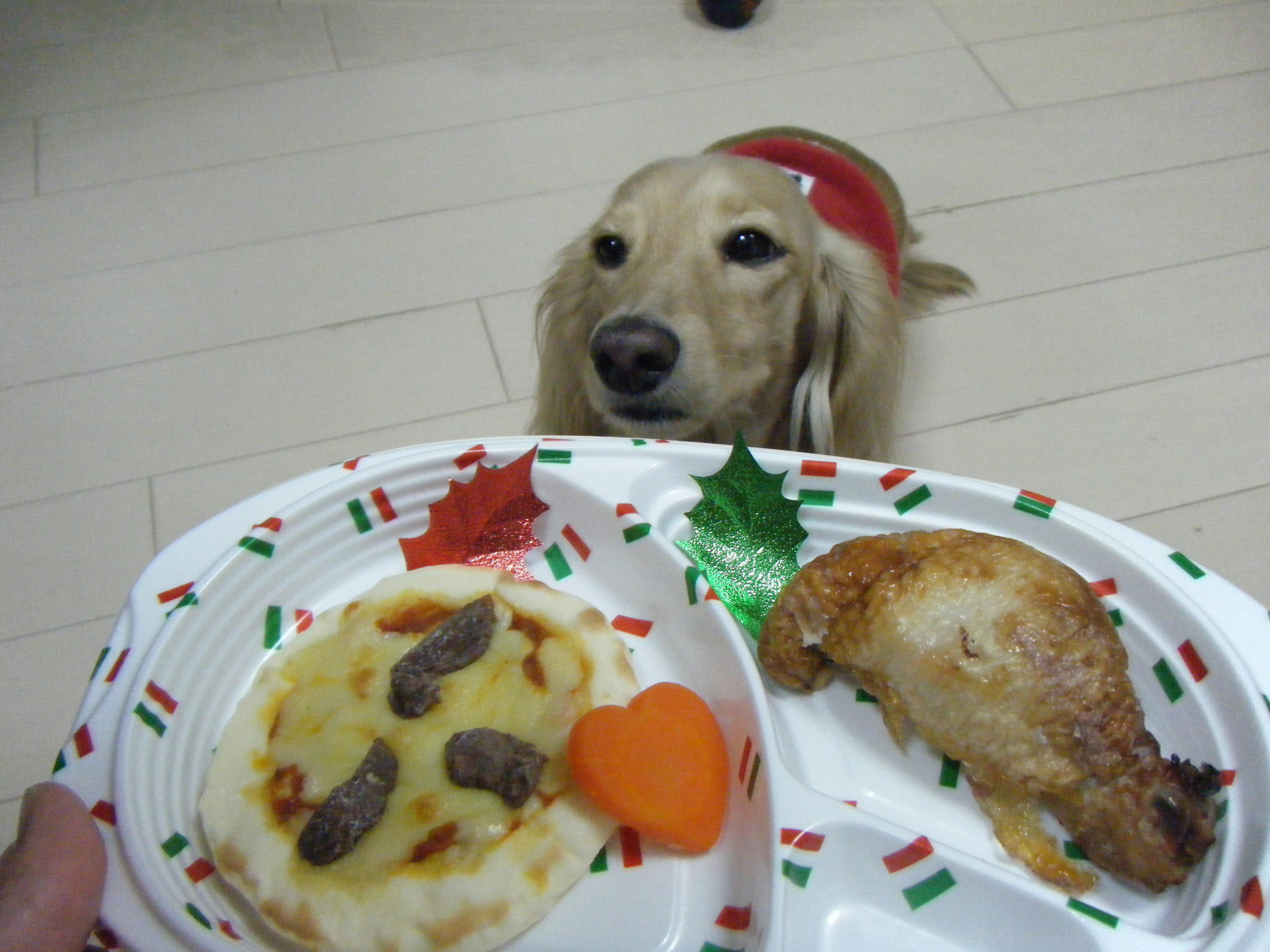 まずごはんはX'masセットのピザ&チキンです♪ 早く、早くと急かさんばかりに