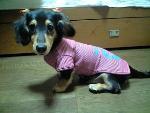 早速新しいお洋服を着せました。もうSサイズで丁度いいみたいです☆